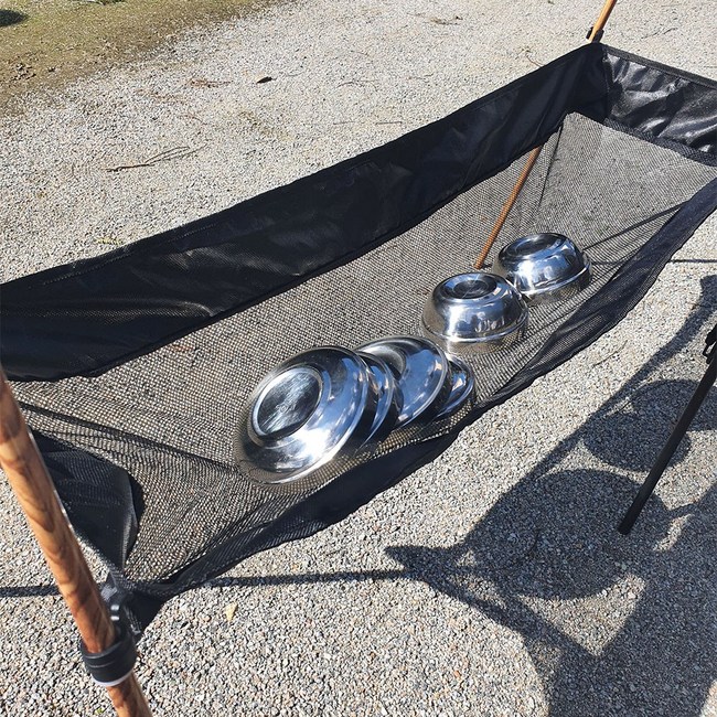 설거지 후 젖은 식기류를 데버스건조망에 넣어두면 위생적으로 빠르게 건조할 수 있어요. 특히 야외에서는 벌레나 먼지가 붙는 것을 막아주어 더욱 안심하고 사용할 수 있답니다. 수납망에 고리를 걸어 컵이나 작은 도구들을 걸어두는 것도 좋은 아이디어예요. 🍽️