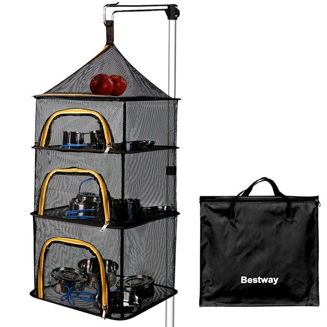 대부분의 데버스건조망은 고강도 스틸 와이어 프레임이나 강화 플라스틱 프레임으로 제작돼요. 이 프레임은 여러 층의 건조물을 지탱할 수 있는 충분한 강도를 가지고 있으며, 형태가 쉽게 변형되지 않아요. 상단에는 견고한 고리나 카라비너가 부착되어 있어, 나뭇가지, 텐트 폴대, 빨랫줄 등 어디에든 안정적으로 걸어 사용할 수 있어요. 건조망이 뒤집히거나 내용물이 쏟아질 걱정 없이 안심하고 사용할 수 있는 것이 큰 장점입니다. 💪